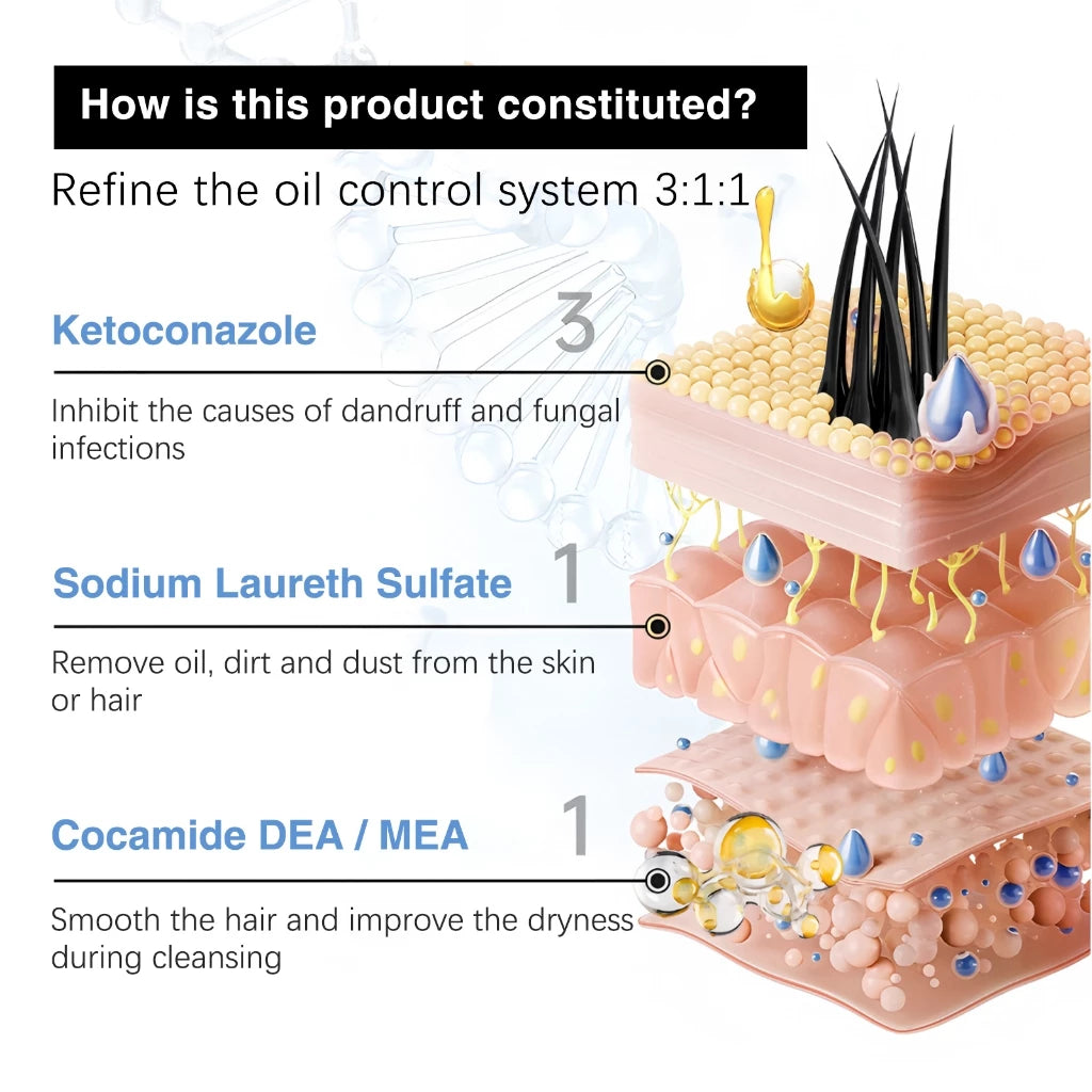 Powerful dandruff removal: Containing 1% Ketoconazole, it effectively kills the fungus (Malassezia) that causes dandruff.